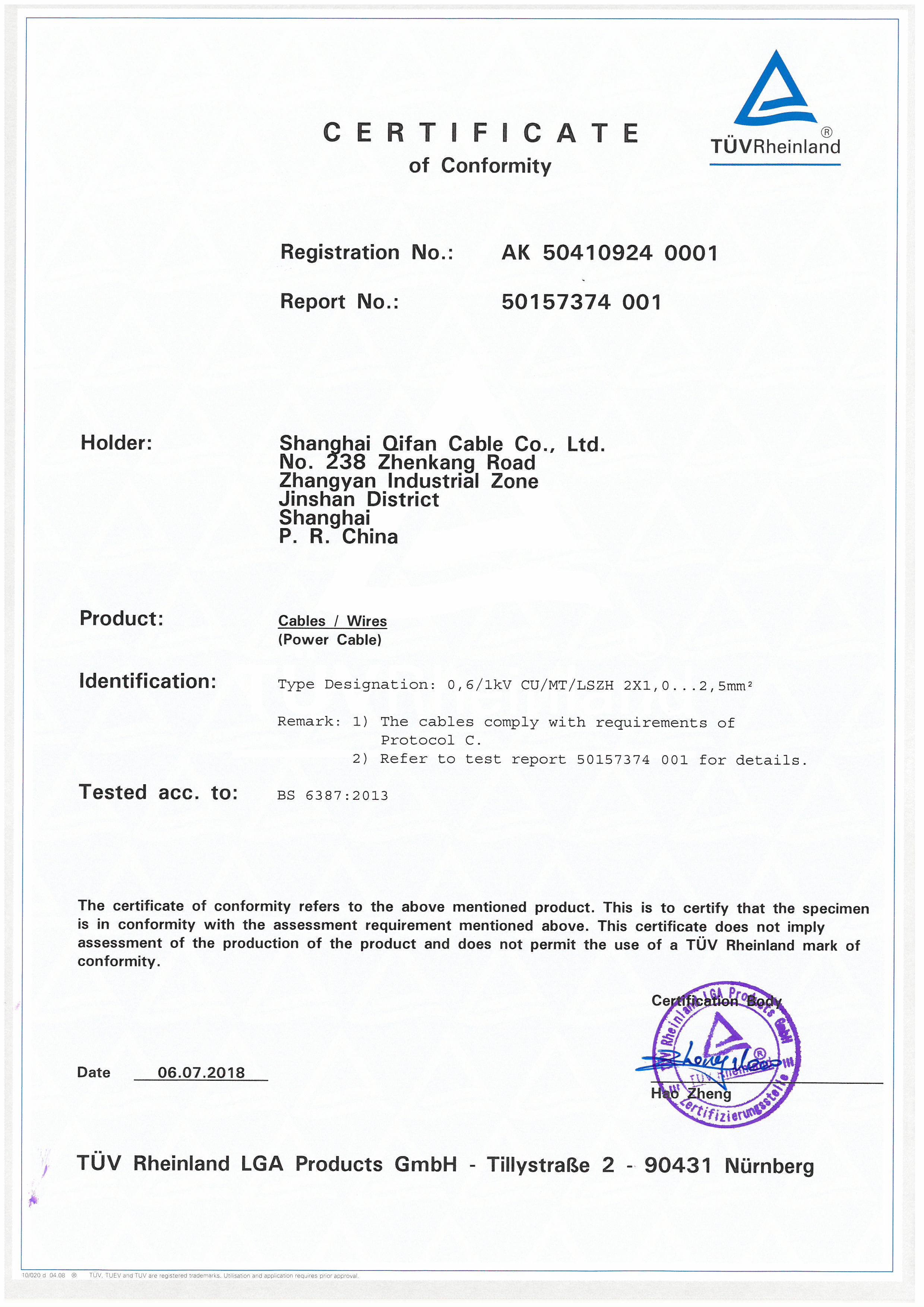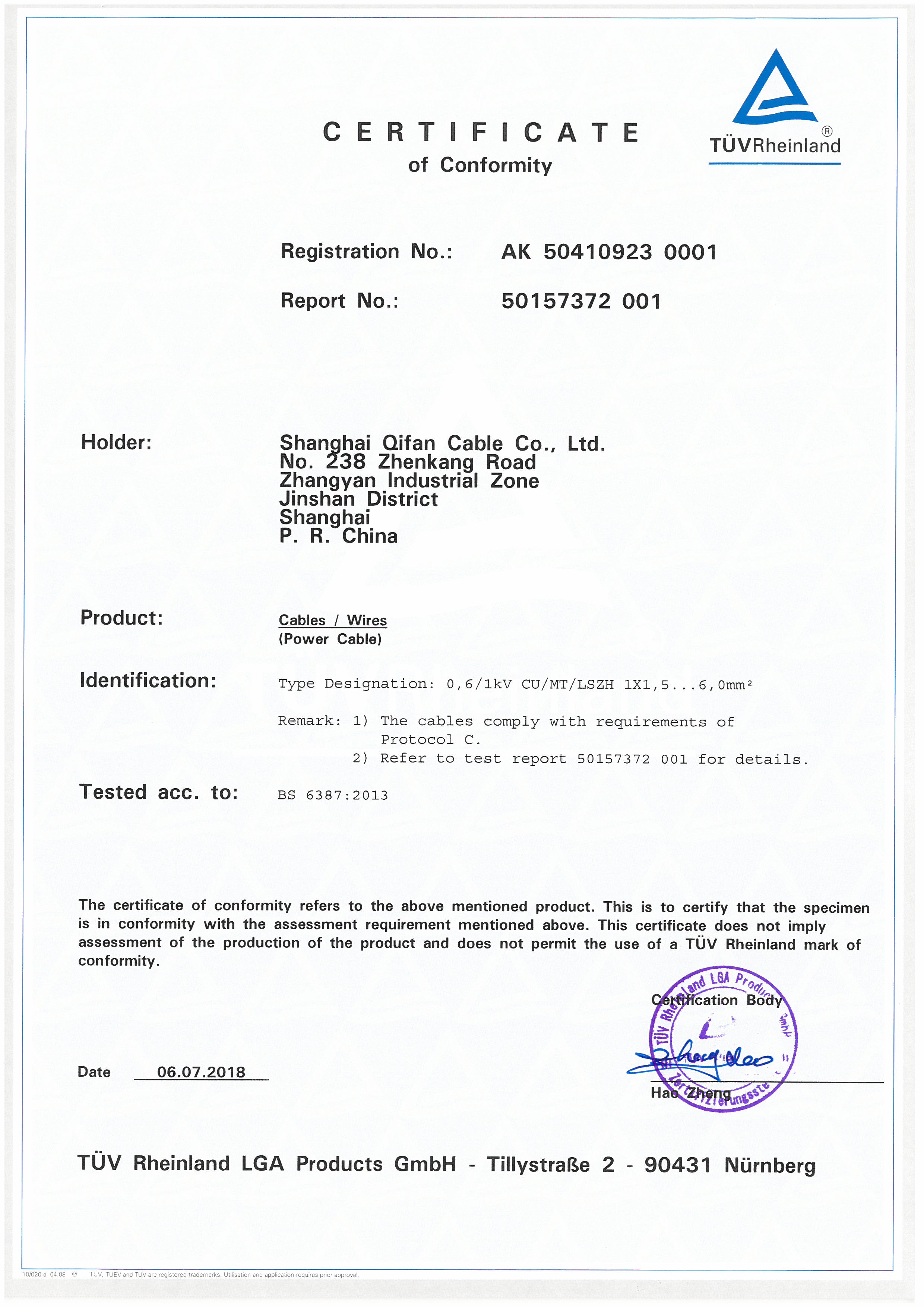 BS6387 (C) CU/MT/LSZH 1x1.5~6mm2
