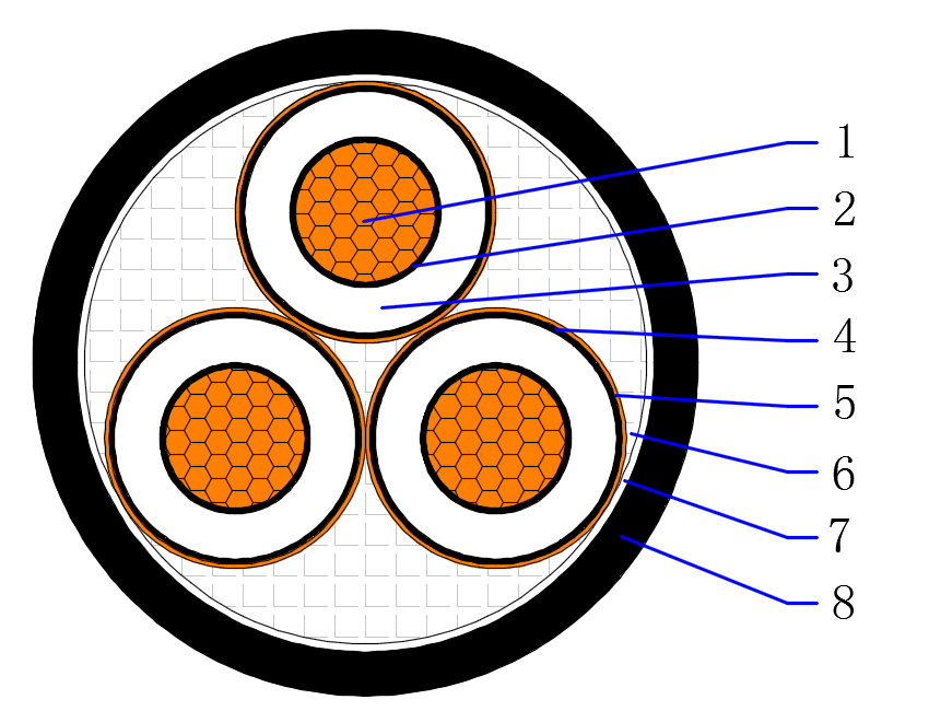 - 3.6/6(7.2)kV CU/XLPE/CTS/PVC Three core unarmored cable
