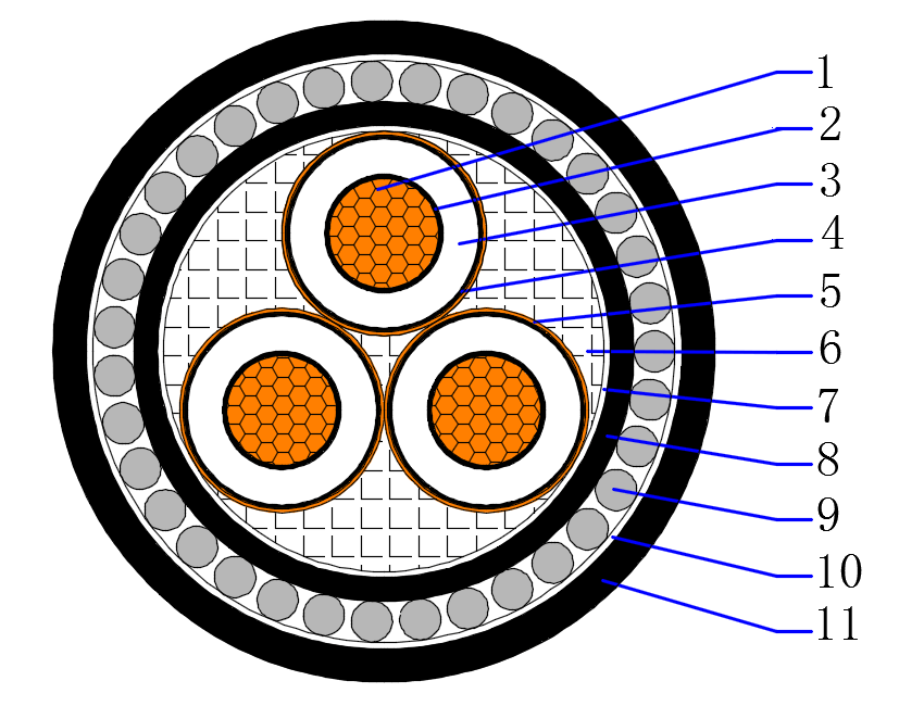 - 3.6/6(7.2)kV CU/XLPE/CTS/PVC/SWA/PVC Three core armored cable